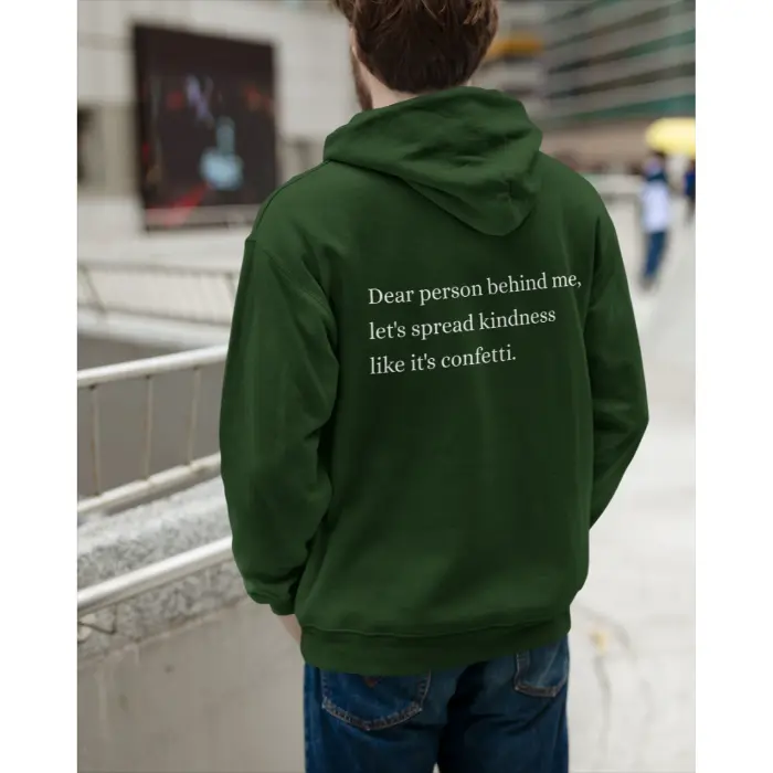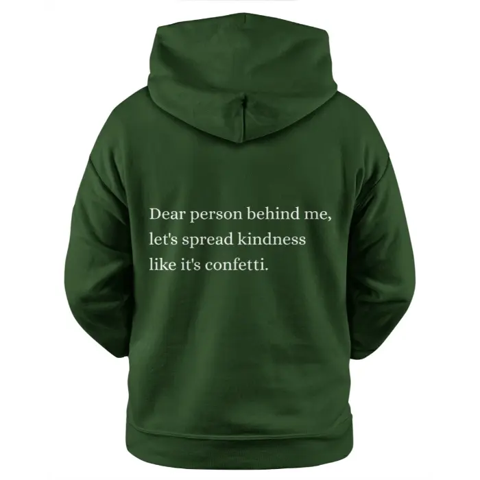 Spread a little joy, one hoodie at a time. This isn’t just clothing; it’s a silent invitation to kindness, a subtle nudge towards connection. The message on the back, “Dear Person Behind Me, Let’s Spread Kindness Like It’s Confetti,” is a playful prompt, a reminder that even small acts of generosity can brighten someone’s day. Imagine the smiles it might inspire – the unexpected kindness sparking a ripple effect of positivity throughout the day. It’s a conversation starter, a shared sentiment, and a wearable act of optimism.
