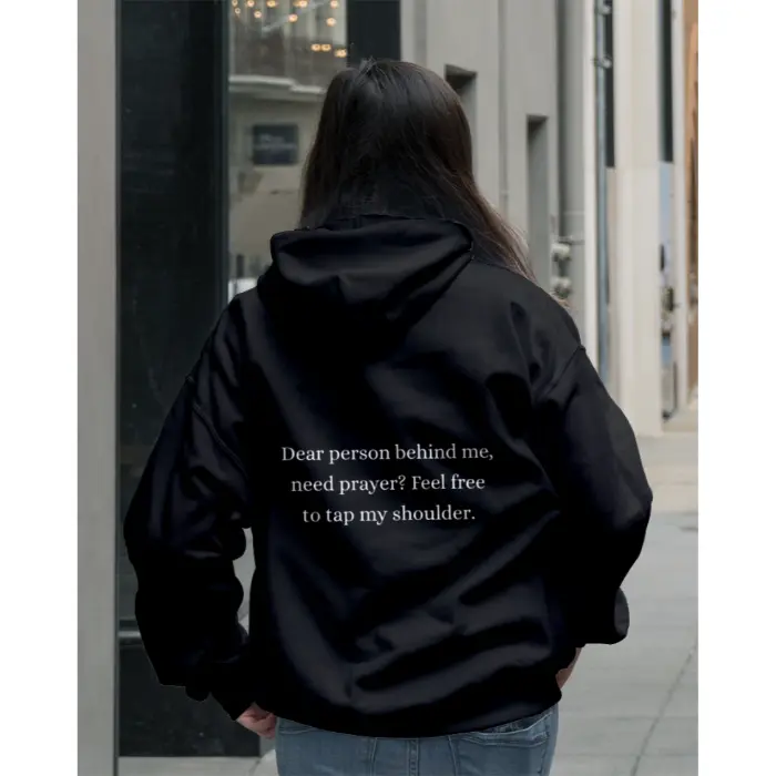 Buy Dear Person Behind Me, Need Prayer Feel Free To Tap My Shoulder Dark Hoodie for Men and Women at an Affordable Price
