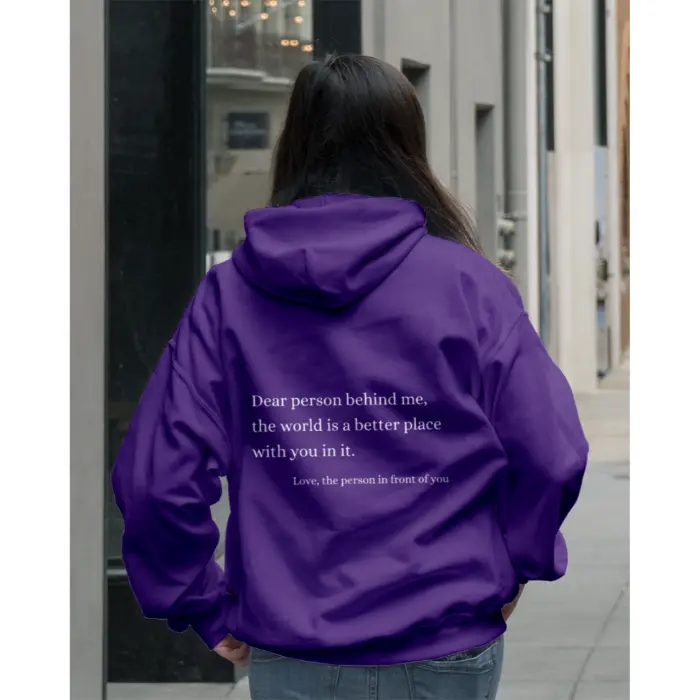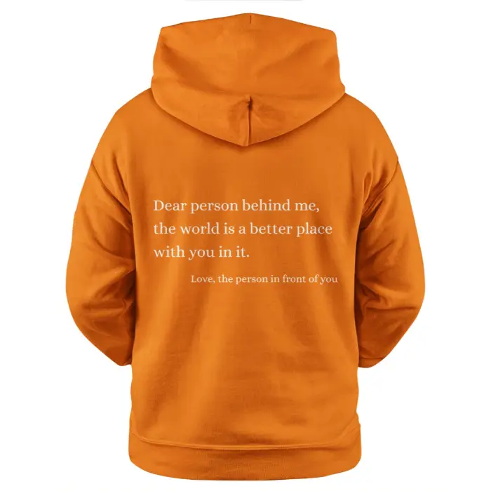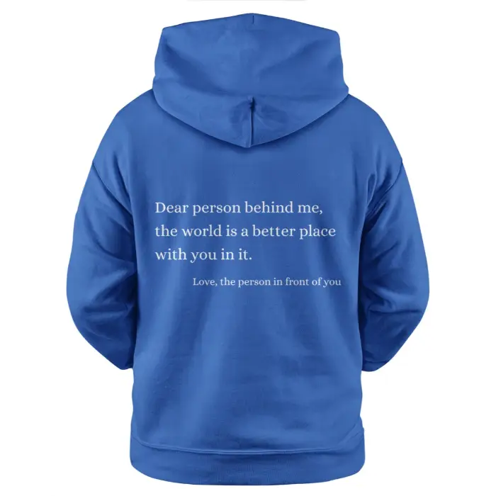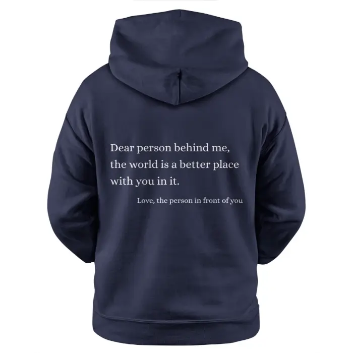 Buy Dear Person Behind Me, the World Is a Better Place With You in It. Love, the Person in Front of You Dark Hoodie for Men and Women at an Affordable Price